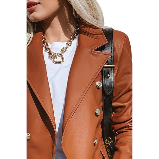 Flarix Faux Pleather Button Down Jacket Brown (S-L)