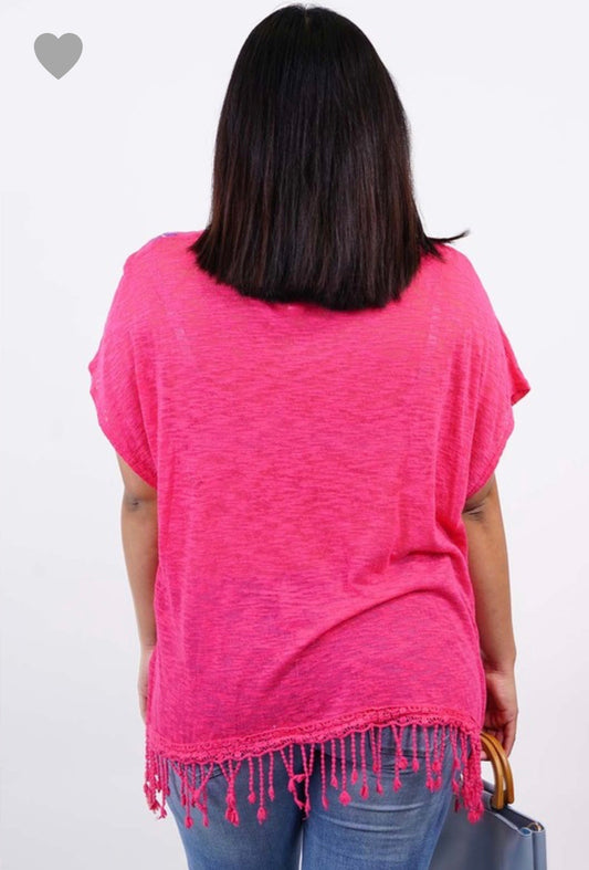 Amerikan Basics Embroidered Fringe Plus Top Pink (1X-3X)