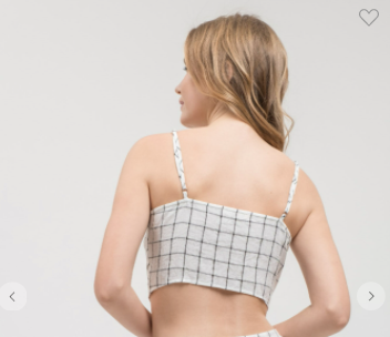 Lydelle Checkered Button Down Cami Crop Top W/ Adjustable Straps (White or Black S-L)