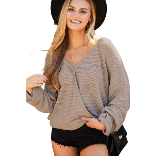 Ninexis Crossover V Neck Knit Top (2 Colors S-XL)