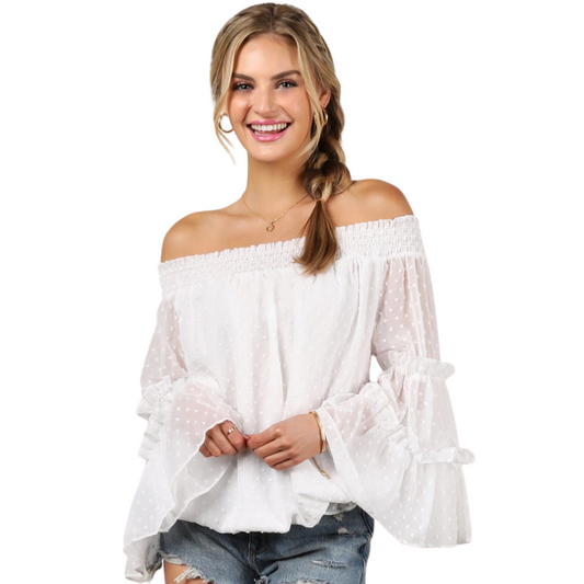 Ninexis Open Shoulder Ruffled Sleeve Top (3 Colors S-L)