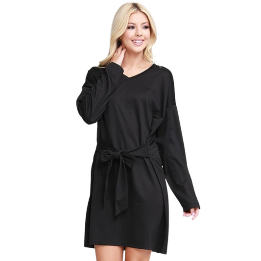Ninexis Long Sleeve Tie Dress (Black or Plum S-XL)