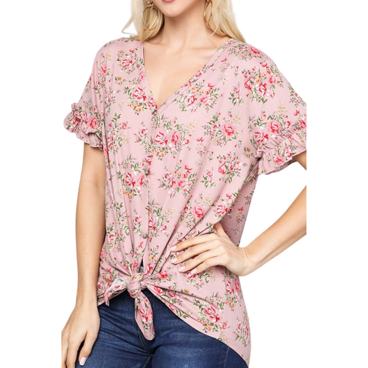 Ninexis Floral Ruffled Sleeve Button Shirt (S-XL)