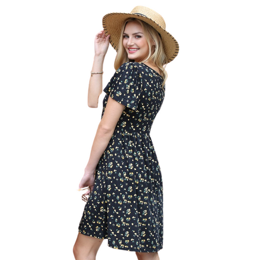 Ninexis Floral Short Sleeve Dress (S-XL)