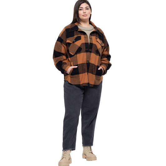 Perch Plus Buffalo Checkered Shacket (1X-3X)