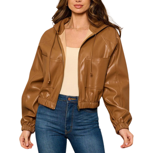 Promesa Pleather Hoodie Jacket Taupe (S-L)