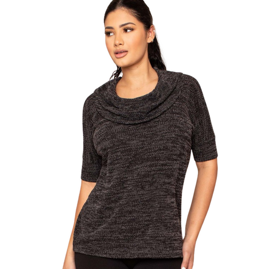 Symphony Caul Neck Knit Top (Black & Taupe S-L)