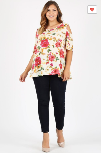 Sweet Lindsey Plus Floral Blouse W/ Shoulder Cut Outs (1XL-3XL)