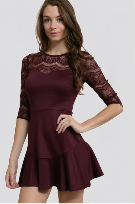 Yuni Apparel Lace Burgundy Dress (Size S-L)
