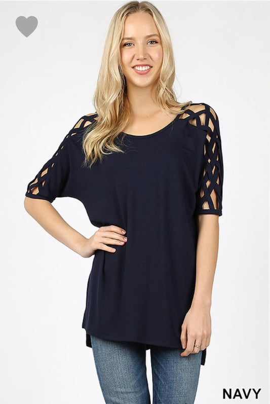 Zenana Plus Woven Shoulder Top Black or Navy (1XL-3XL)