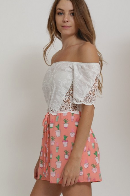 Cals Lace Cactus Romper (Pink or Yellow S-L)
