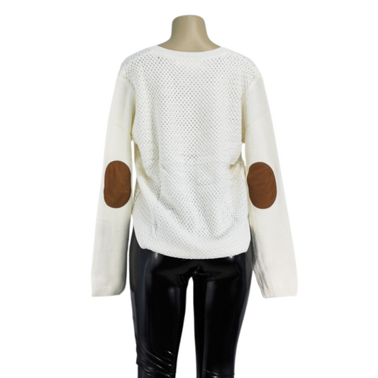 Dalia Knit Sweater W/ Suede Elbows (Gray & Ivory S-L)