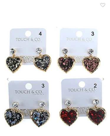 Touch & Co. Heart Drop Earrings (Red, Gold, or Silver)