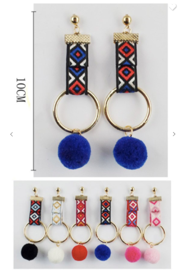 Fashion Jewelry Tribal Dangle Earrings W/ Fur Balls (Available in 6 fun colors!)