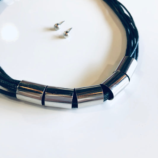 Woven Choker Necklace W/ Metal Beads