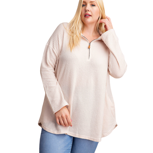 Kori Cream Soft 3/4 Zip Waffle Sweater (1XL- 3XL)
