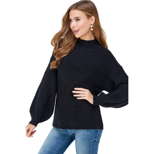 Olive & Leaf Solid Knit Crew Sweater W/ Puff Sleeves (S-L)